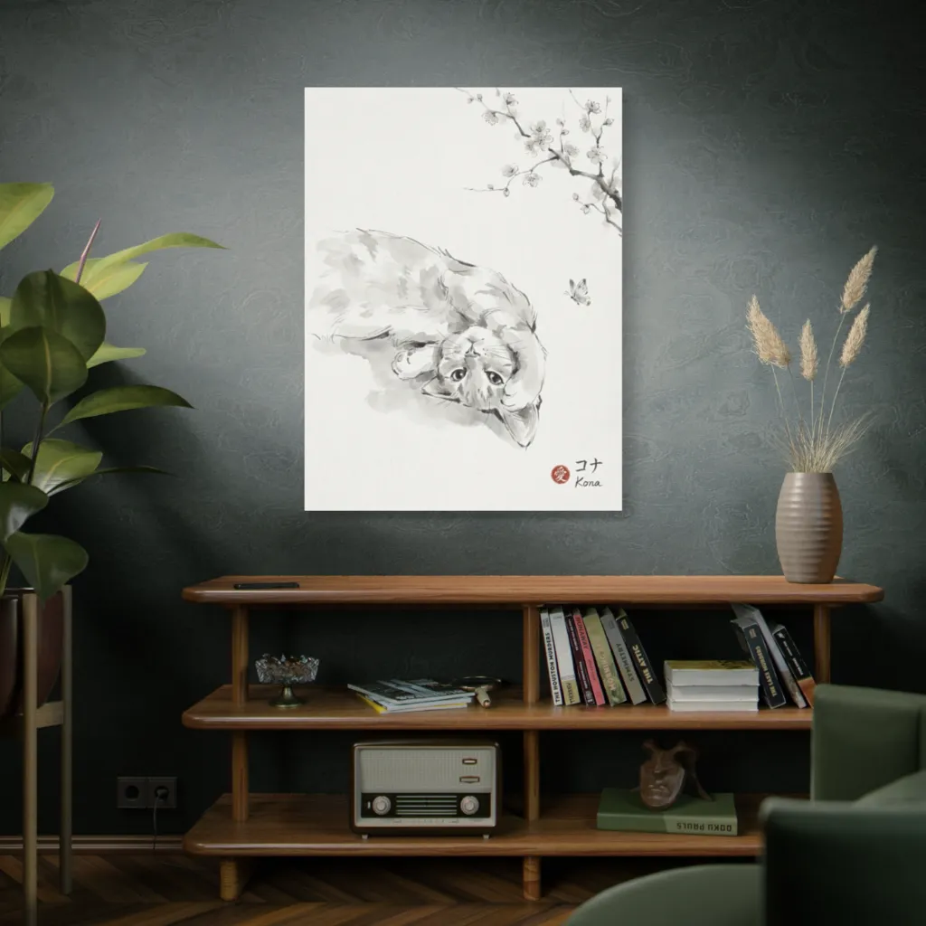 This piece creates a beautifully serene, playful atmosphere. The delicate cherry blossoms and whimsical cat evoke a daily sense of tranquil joy and gentle wonder, making any space feel lighter and profoundly comforting. Pure emotional bliss.