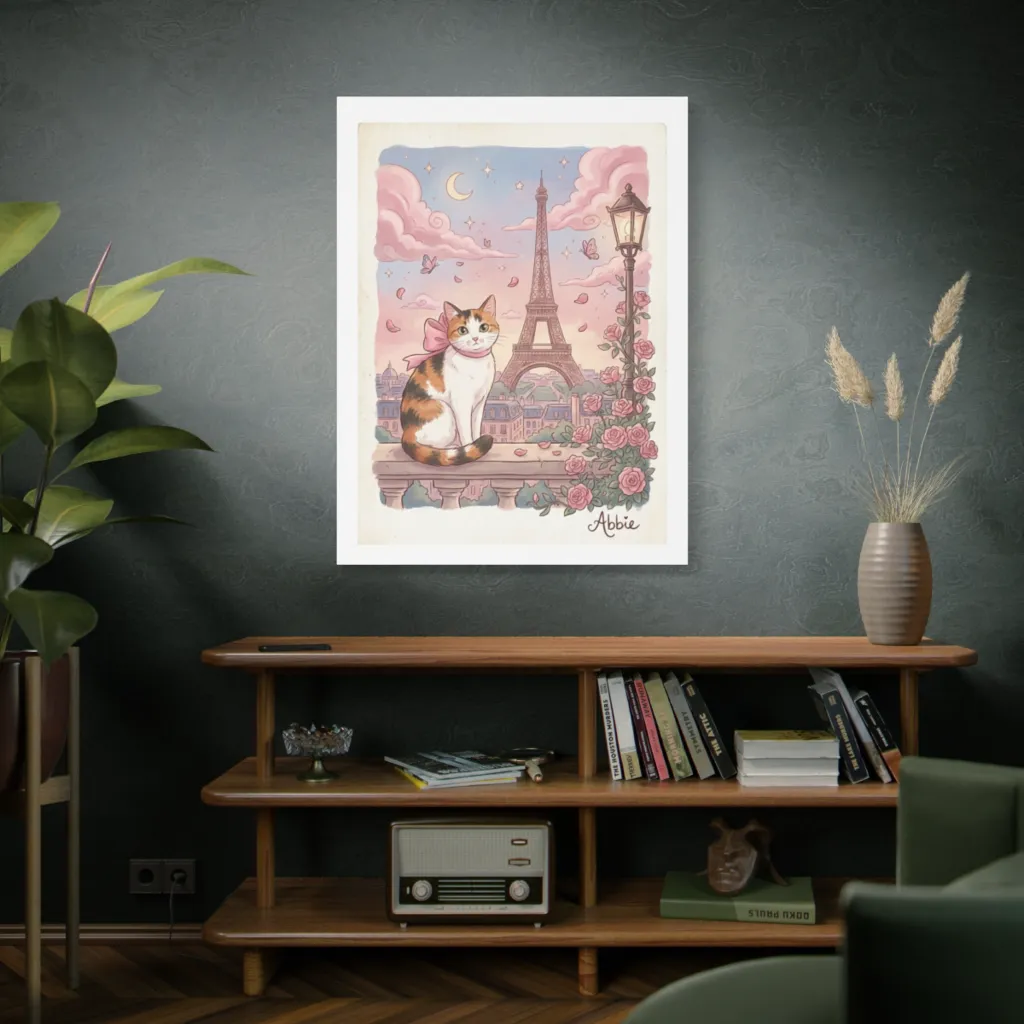Abbie's precise geometry against the pastel's tonal harmony offers a truly visceral Parisian tableau. The avant-garde juxtaposition of feline poise and whimsical decay demands quiet reverence. One almost expects a Louvre docent.