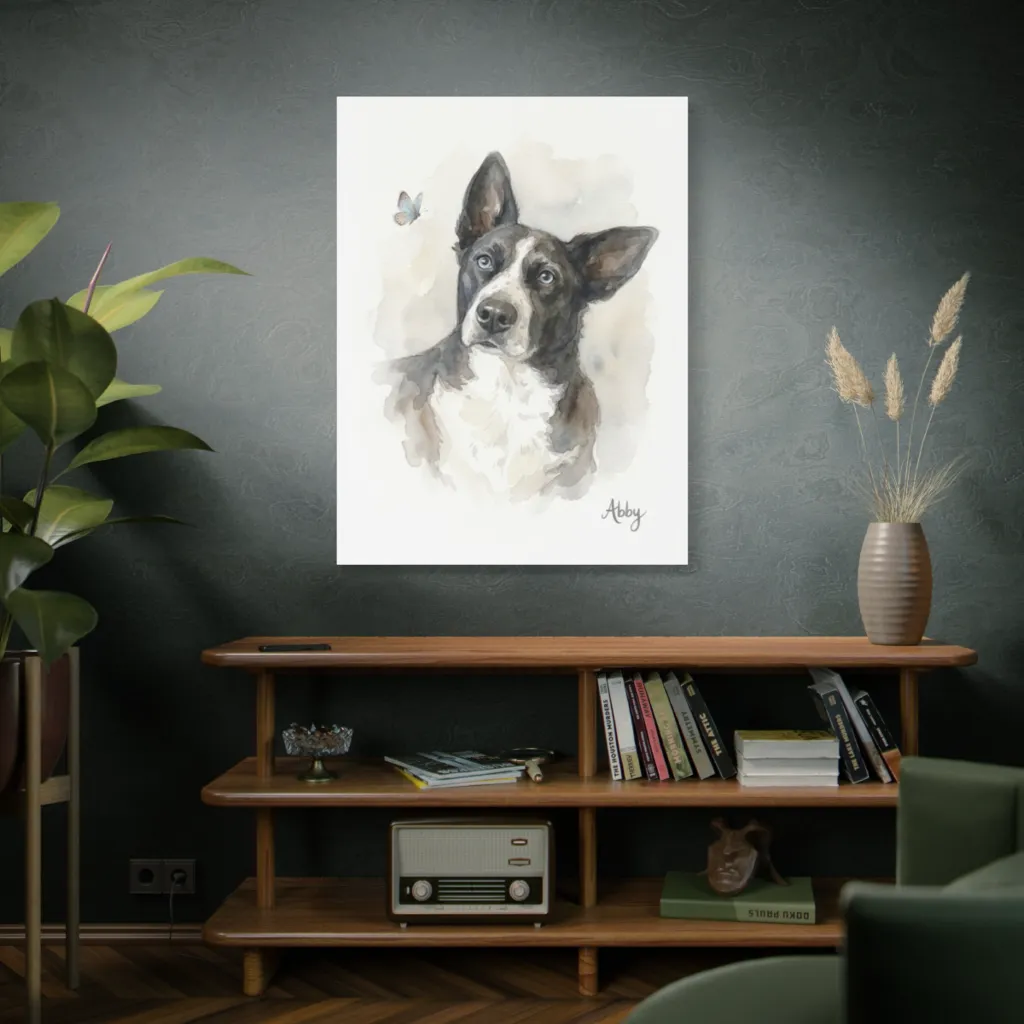 This piece radiates a delightful blend of playful curiosity and serene grace. Abby's gaze creates a cozy, heartwarming vibe, offering a daily dose of gentle wonder and emotional uplift.