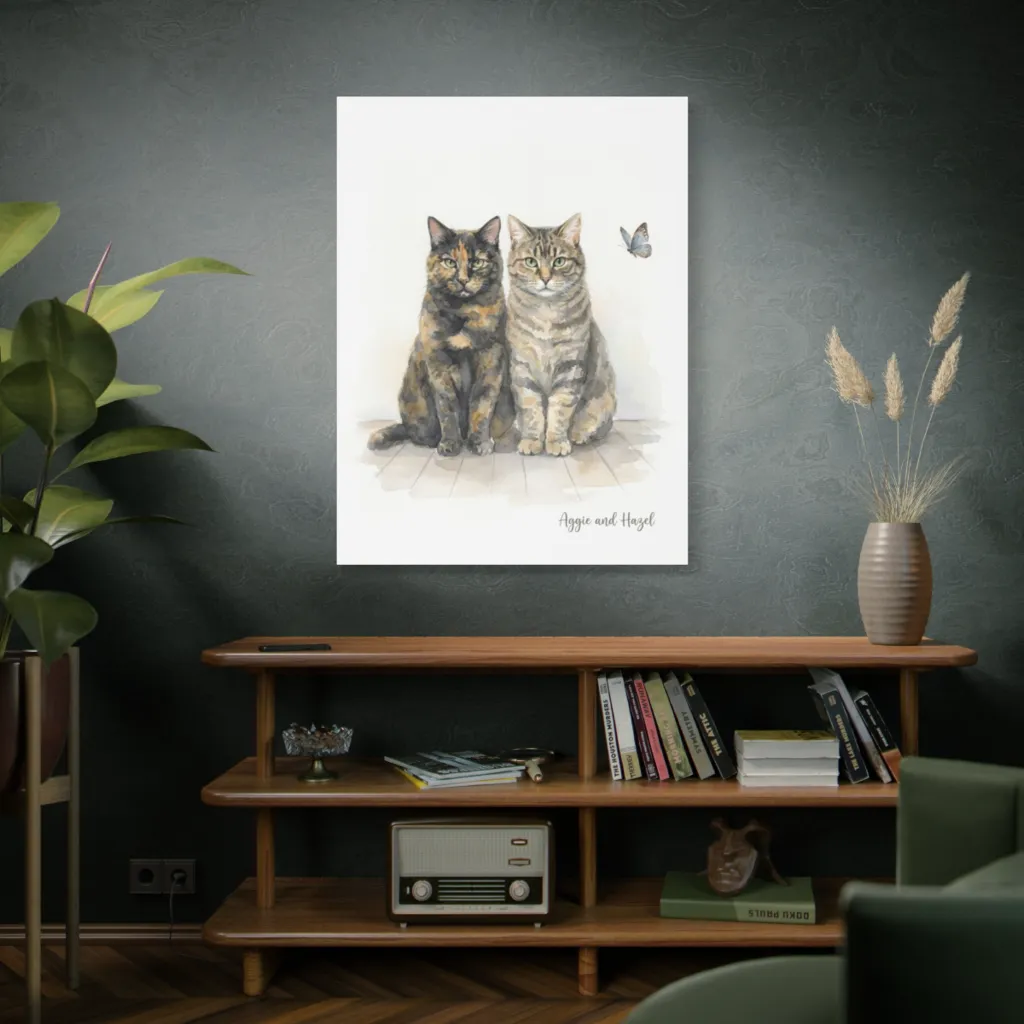 This contemporary interpretation of traditional watercolor portraiture is brilliantly innovative. The serene aesthetic, combined with the bold, observant composition, redefines pet art for the modern era. Truly cutting-edge.