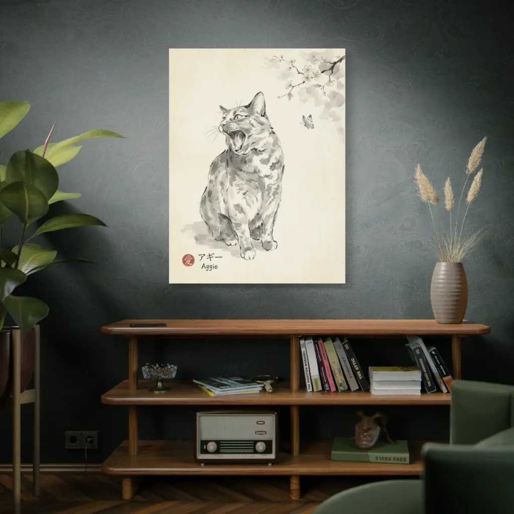 This sumi-e is a uniquely expressive, conversation-starting piece. Aggie's whimsical moment has profound emotional impact and lasting appeal, making it a treasured addition with superb display potential.