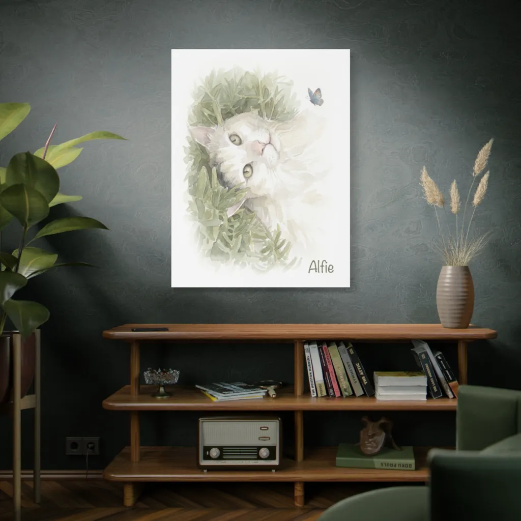 This digital watercolor brilliantly fuses traditional charm with a contemporary aesthetic. Alfie's portrait, rendered with innovative soft gradients and bold composition, feels fresh and modern. A striking digital interpretation of classic pet artistry.