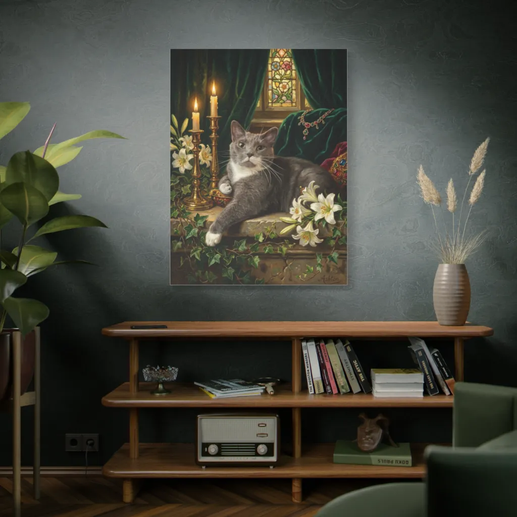 Ashton, the ultimate feline connoisseur, lounges regally amongst his treasures, pondering if the lilies are fresh enough.
