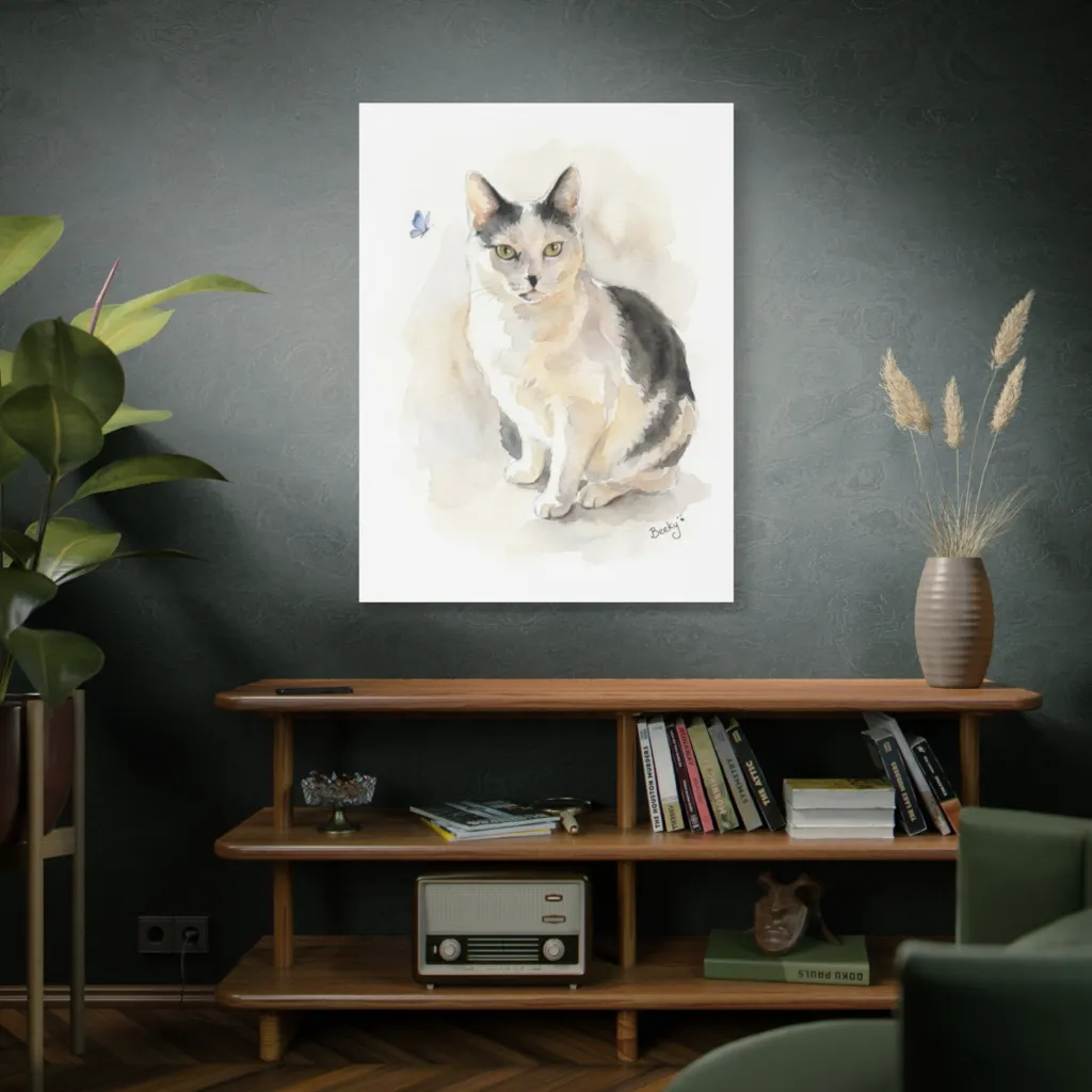 "Beeky's Blue Reverie" is a visceral triumph! The juxtaposition of wispy watercolor and those piercing green eyes achieves an audacious tonal harmony. Truly evocative; a feline avant-garde masterpiece.