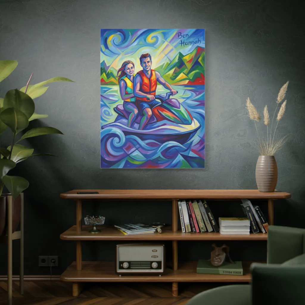 A stunning artistic interpretation of Ben and Hannah, transformed into a unique masterpiece. This one-of-a-kind creation captures the essence and personality in vibrant detail.
