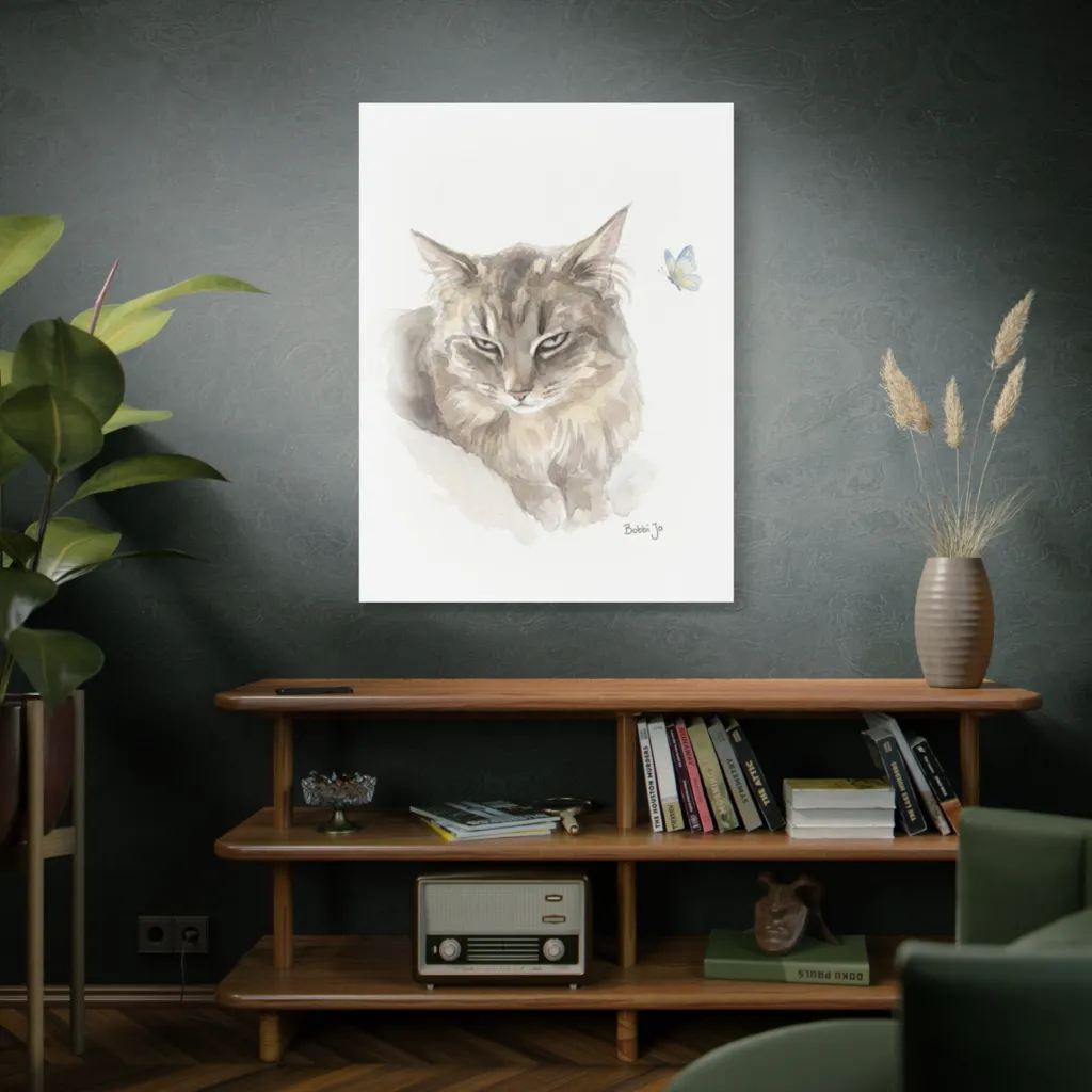 “Bobbi Jo, Blue Wing” is charming! Ideal above a raw oak console in a sun-drenched reading nook. Complement with brushed brass and velvet textiles for a chic, sophisticated touch. Utterly delightful.