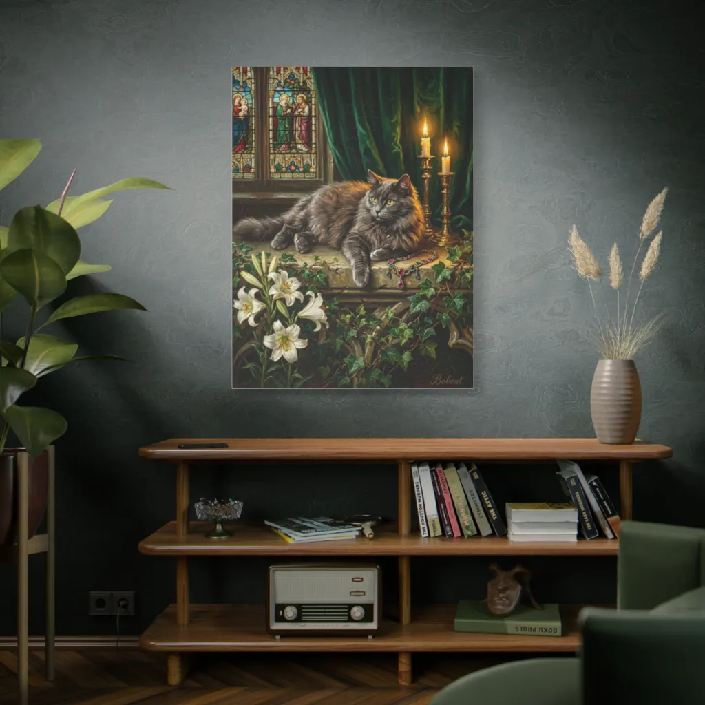 This piece commands attention with its majestic, almost devotional composition. Evoking Renaissance masters, Bobcat's presence is profound, exhibiting a contemplative grandeur worthy of any prestigious exhibition.
