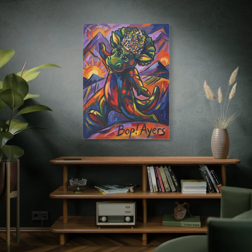 Bop! Ayers' vibrant energy belongs above a sleek mid-century credenza in a creative study. Pair with raw oak, brushed brass, and plush velvet for a chic, playful statement. An instant conversation starter.