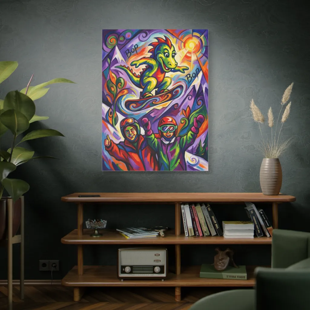"Bop's Mountain Reverie" is a uniquely vibrant, captivating piece. Its exuberant energy and lasting appeal make it a treasured, conversation-starting addition to any esteemed collection. A true investment, perfect for prominent display.
