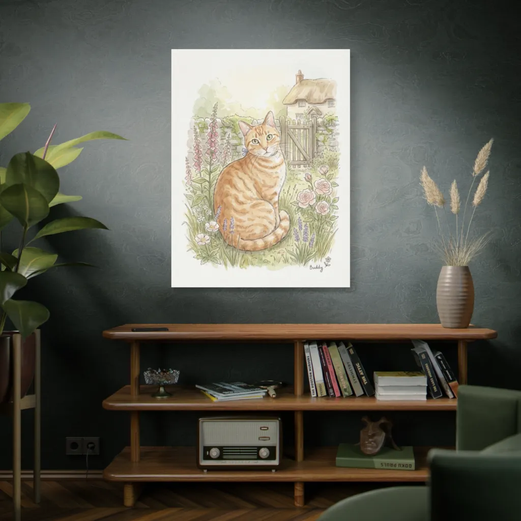 Buddy's serene gaze truly captures his tranquil soul. The watercolor exquisitely highlights his gentle charm, revealing a beloved pet at peace. A purrfect reflection of his sweet, calm spirit.