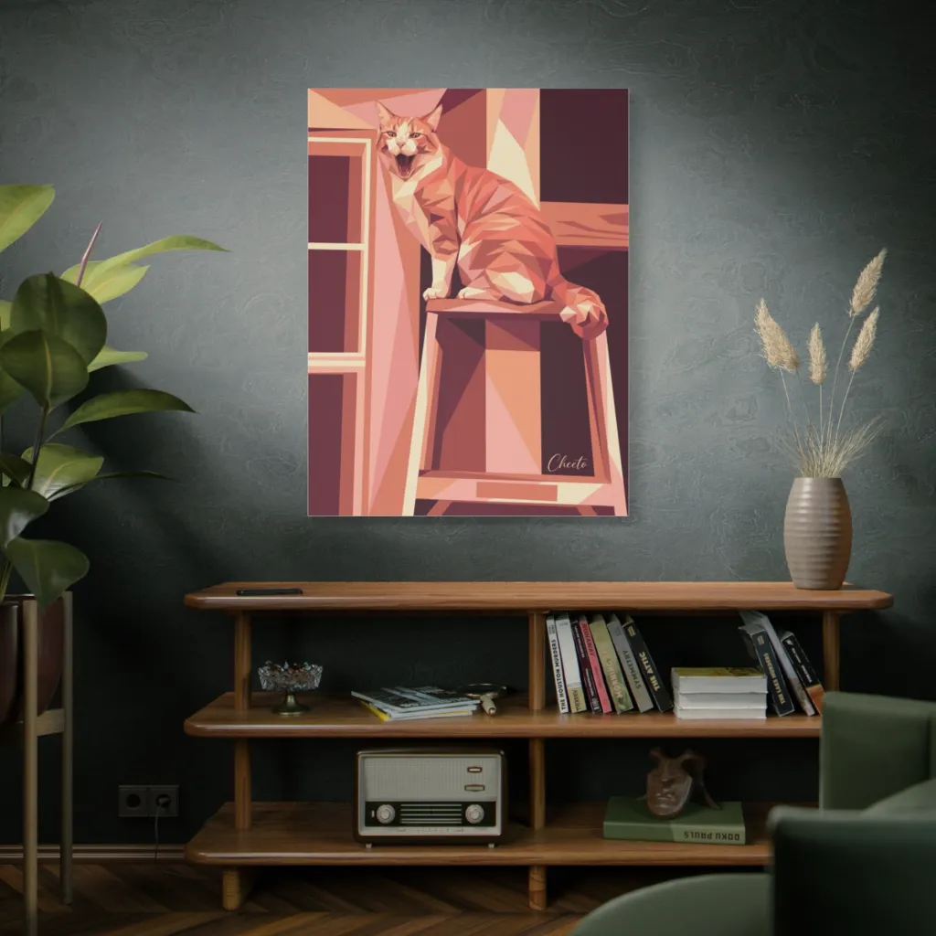 This innovative low-poly portrait boldly reimagines classic pet art. Cheeto's angular energy and geometric forms brilliantly fuse traditional feline regality with a vibrant, cutting-edge digital aesthetic. Truly captivating.