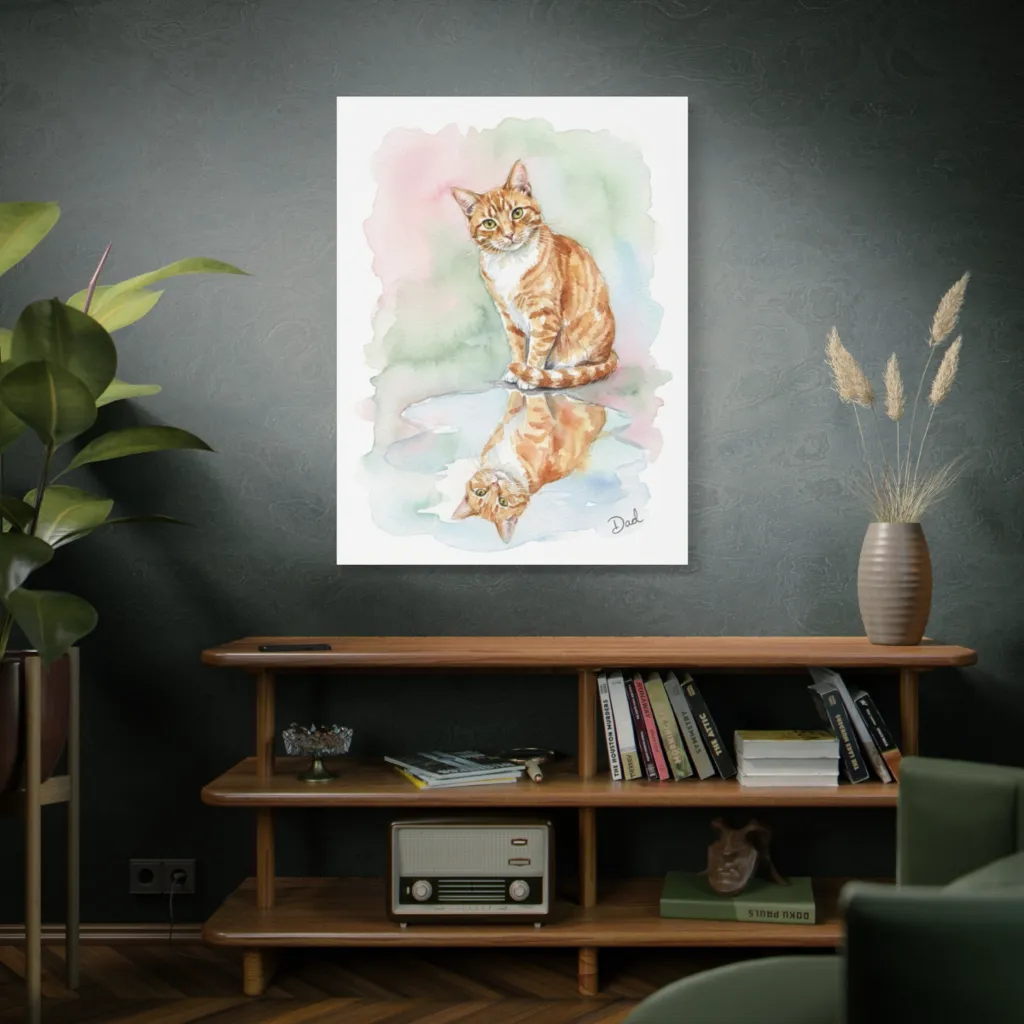 “Dad's Serene Reflection” achieves a visceral tonal harmony. The tabby's contemplative gaze, juxtaposed with the hidden signature, is an avant-garde triumph. A subtle, yet profoundly evocative masterpiece.