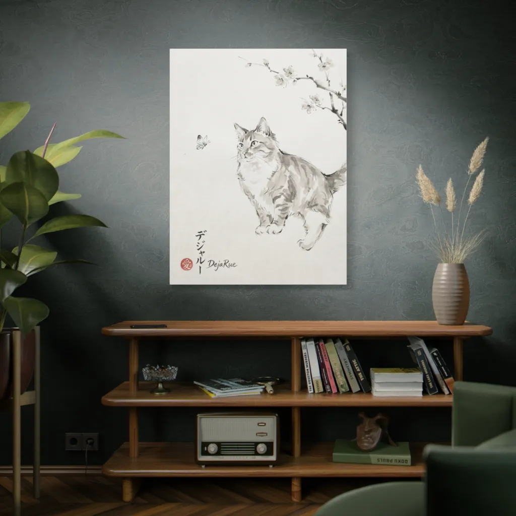 "DejaRue's Blossom Gaze" perfectly complements a serene sun-drenched reading nook. Pair with a raw oak bookshelf and linen textures. The art's gentle palette adds chic sophistication. Absolutely captivating!
