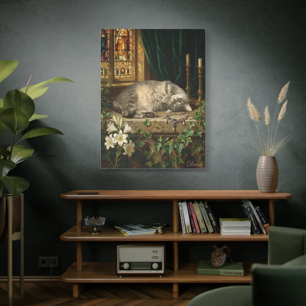 Deva's mischievous spirit shines, even in regal slumber. The luxurious setting beautifully highlights her unique, serene yet playful character. A truly soulful portrayal of her distinct personality.