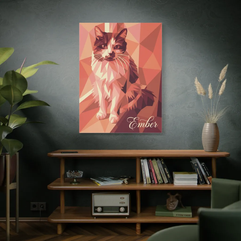 Ember, a polygonal purr-fection, ignites the canvas with her warm, geometric charm.