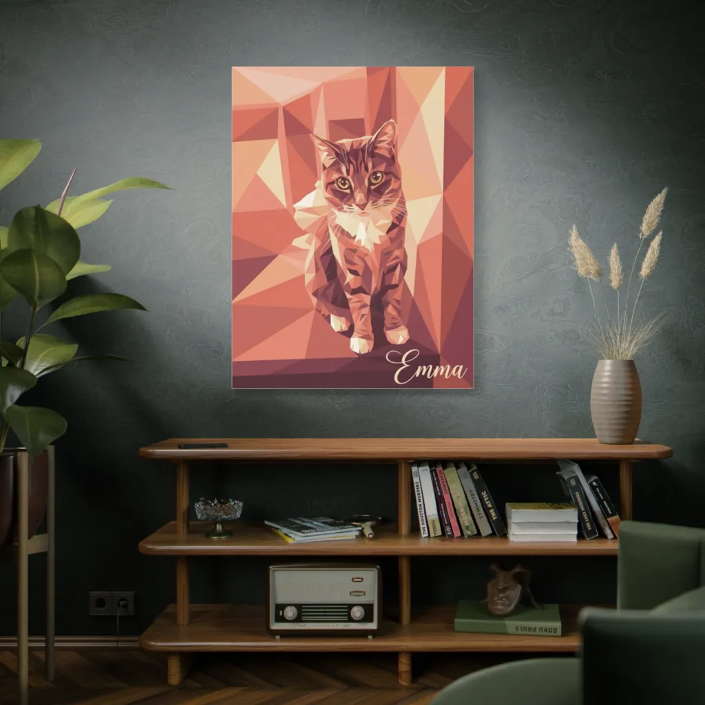 Emma's soulful gaze shines through the mosaic, perfectly capturing her gentle, contemplative spirit. The low-poly style uniquely emphasizes her quiet dignity. Truly special.