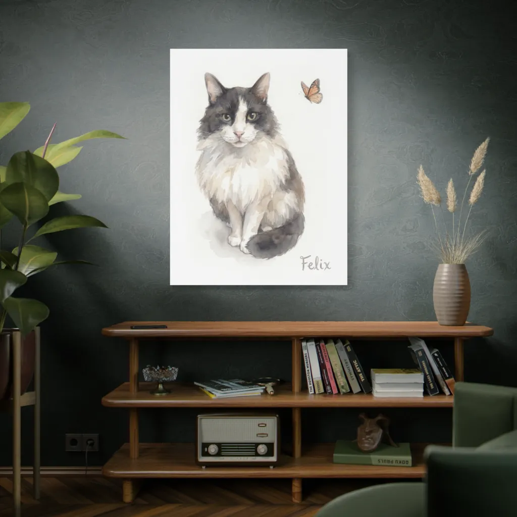 Felix's gentle, yet commanding gaze achieves a delightful intimacy, reminiscent of 19th-century animalier works. Its delicate watercolor composition possesses an understated presence, captivating viewers with quiet contemplation. An exquisite addition.