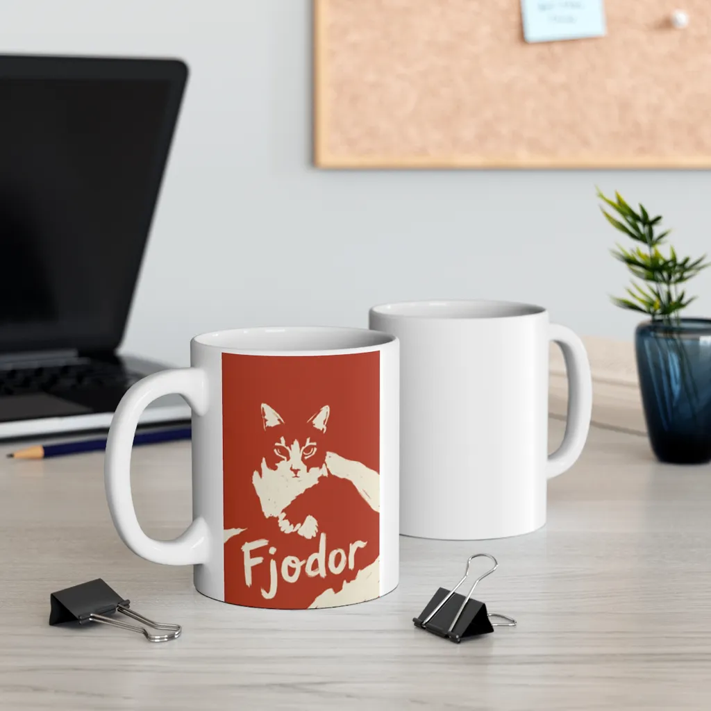 The bold ochre's warm saturation brilliantly grounds Fjodor's majestic calm. Its two-tone graphic pop achieves striking chromatic harmony, capturing his watchful energy. A purr-fect balance of earthy depth and vibrant character.