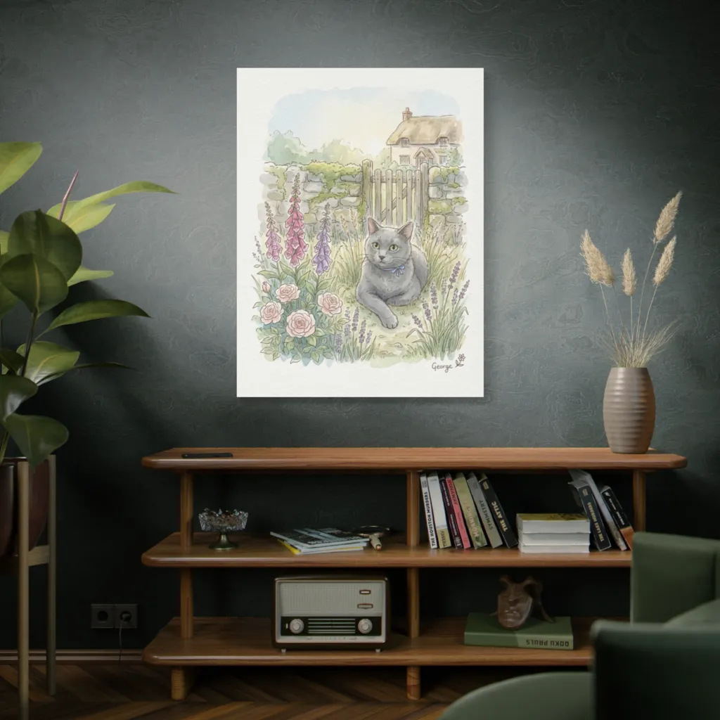 "Garden Repose" brilliantly blends watercolor's timeless charm with a fresh digital sensibility. Its serene composition and vivid palette feel innovatively contemporary, a modern twist on classic pet portraiture.