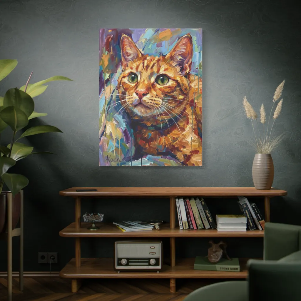A lively, impasto portrait of a vigilant ginger cat, whose vibrant gaze holds all the world's secrets.