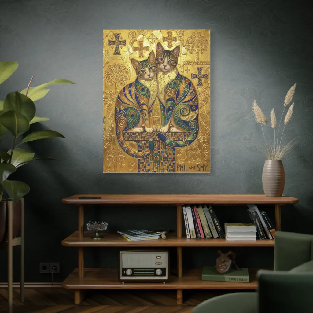 Phil and Shy's majestic, gilded stance perfectly captures their regal patience and demand for affection. Their unique, almost divine presence shines through every Klimt-inspired detail, making them truly special icons.