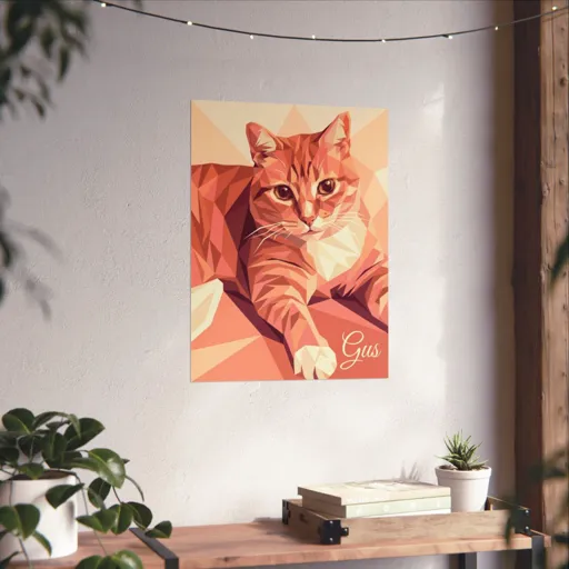 Gus, the geometrically deconstructed ginger, is ready for his close-up, radiating pixelated feline charm.