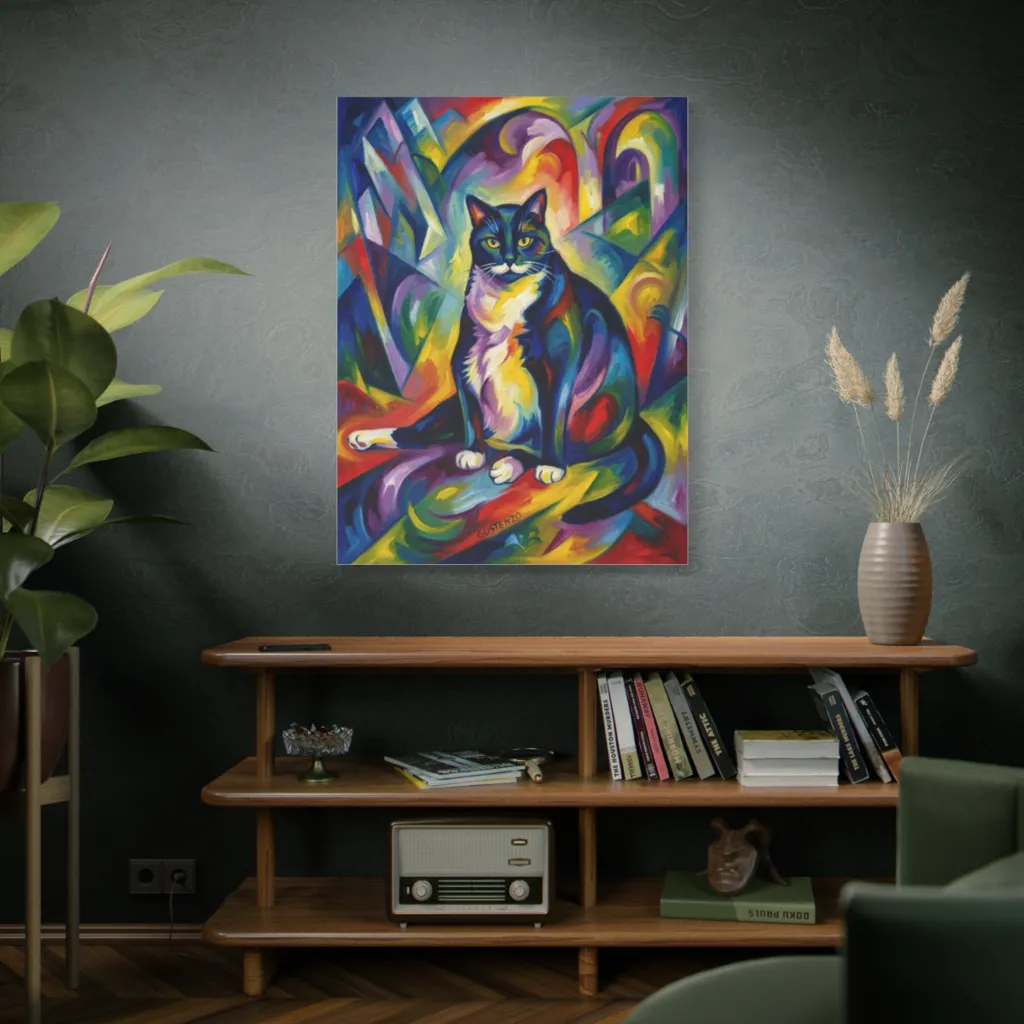 Gustenzoโs chromatic juxtaposition of fractured form and vibrant hues achieves a visceral confidence. An avant-garde feline masterpiece, it challenges the very notion of 'cat art'. Bravo, I suppose.