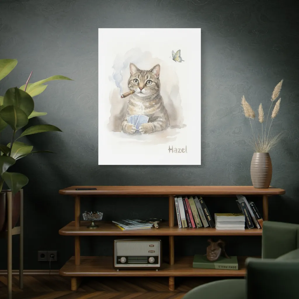 The watercolor's harmonious blend of warm ochres and cool greys perfectly balances Hazel's sophisticated mischief. Subtle saturation shifts capture her contemplative, yet playful, energy. Superb chromatic storytelling!