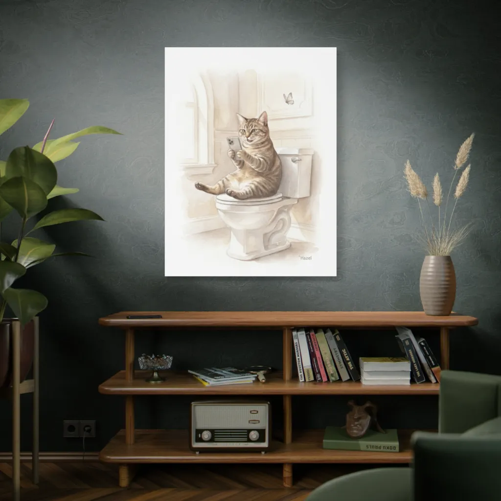 "Hazel's Quiet Musings" offers a poignant juxtaposition: mundane modernity meets feline grace. The watercolor's tonal harmony, with Hazel's visceral, avant-garde engagement, elevates it to a profound social commentary. A Louvre-worthy contemplation of contemporary existence.