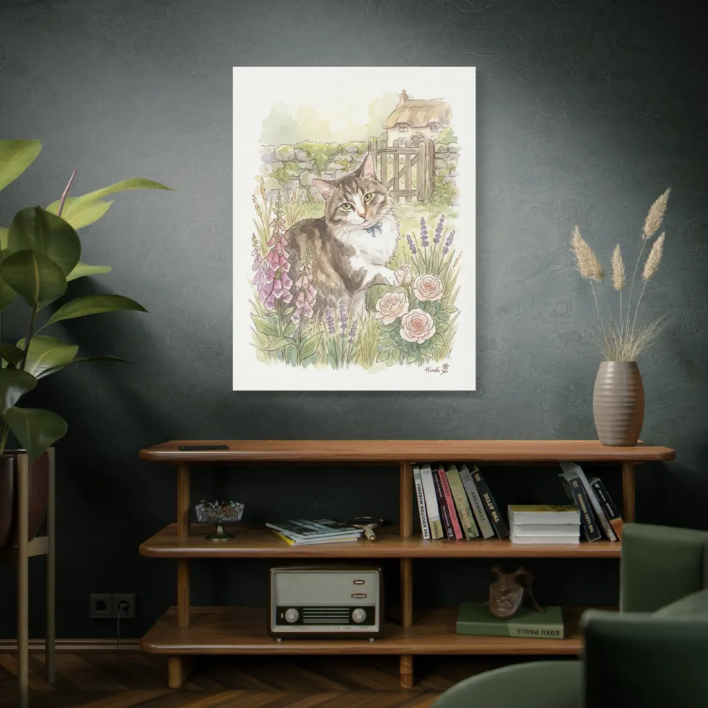"Hindi's Cottage Reverie" exudes charming tranquility. Imagine it above a raw oak console in a sun-drenched reading nook. Complement with brushed brass accents and soft linen textures for effortless, chic sophistication. Absolutely enchanting!