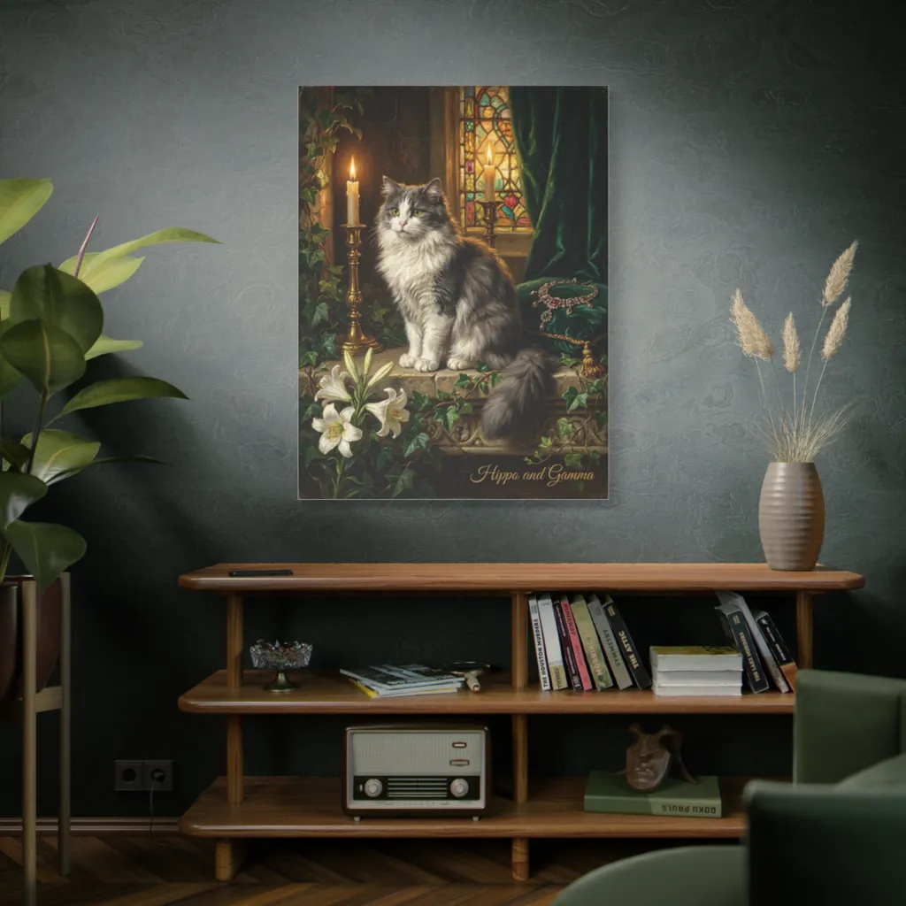 The art evokes a serene, reverent atmosphere, blending cozy warmth with an almost spiritual calm. It creates a feeling of peace and quiet contemplation, offering a daily dose of tranquil beauty and luxurious comfort.