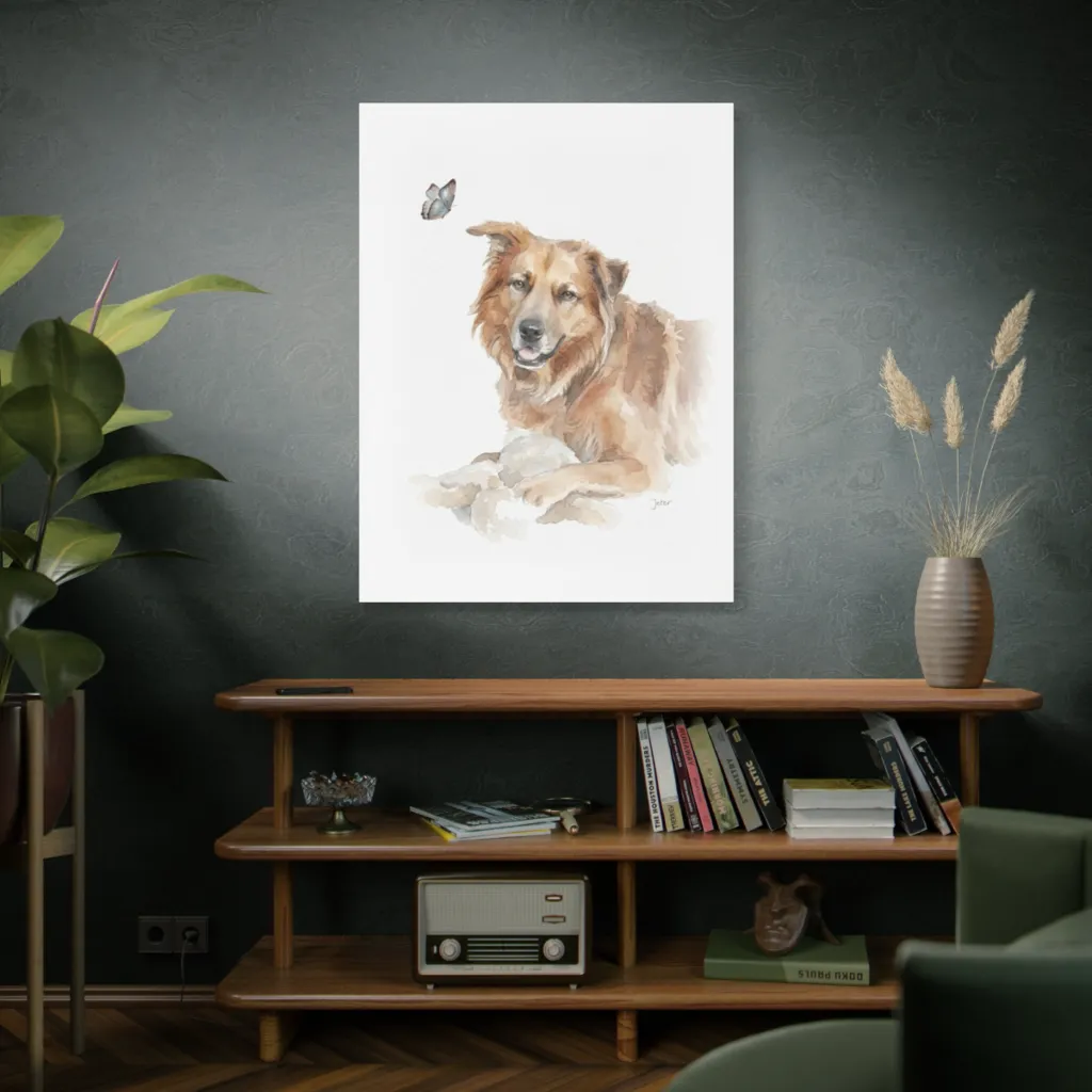 This piece exudes a tranquil, heartwarming joy. Jeterโs curious gaze at the butterfly cultivates a serene, playful wonder. Daily, it would infuse your space with a gentle, comforting calm and pure happiness.