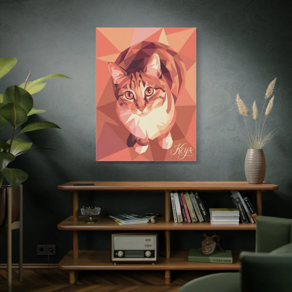 Keya's Amber Gaze brilliantly fuses low-poly digital sculpting with classic portraiture. The geometric facets boldly modernize the feline form, creating an innovative aesthetic. It's both futuristic and warmly familiar; a groundbreaking contemporary art piece.