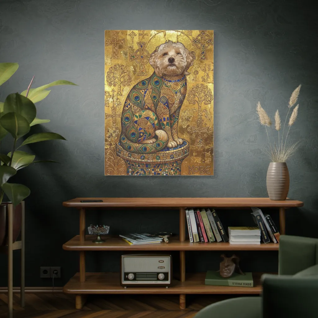 Kobe's radiant gaze and regal posture beautifully capture his champion spirit. The whimsical opulence truly reveals his unique, joyful soul—a beloved icon.