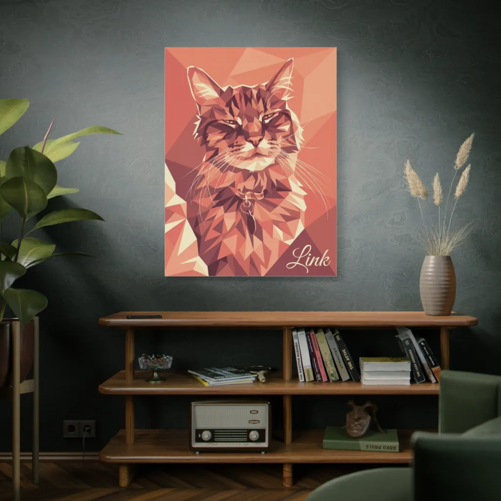 This low-poly portrait captures a majestically unimpressed cat, rendered in warm geometric facets, exuding an air of stylish feline disdain. Forget Hyrule, this Link's quest involves napping and judging your life choices with geometric precision.