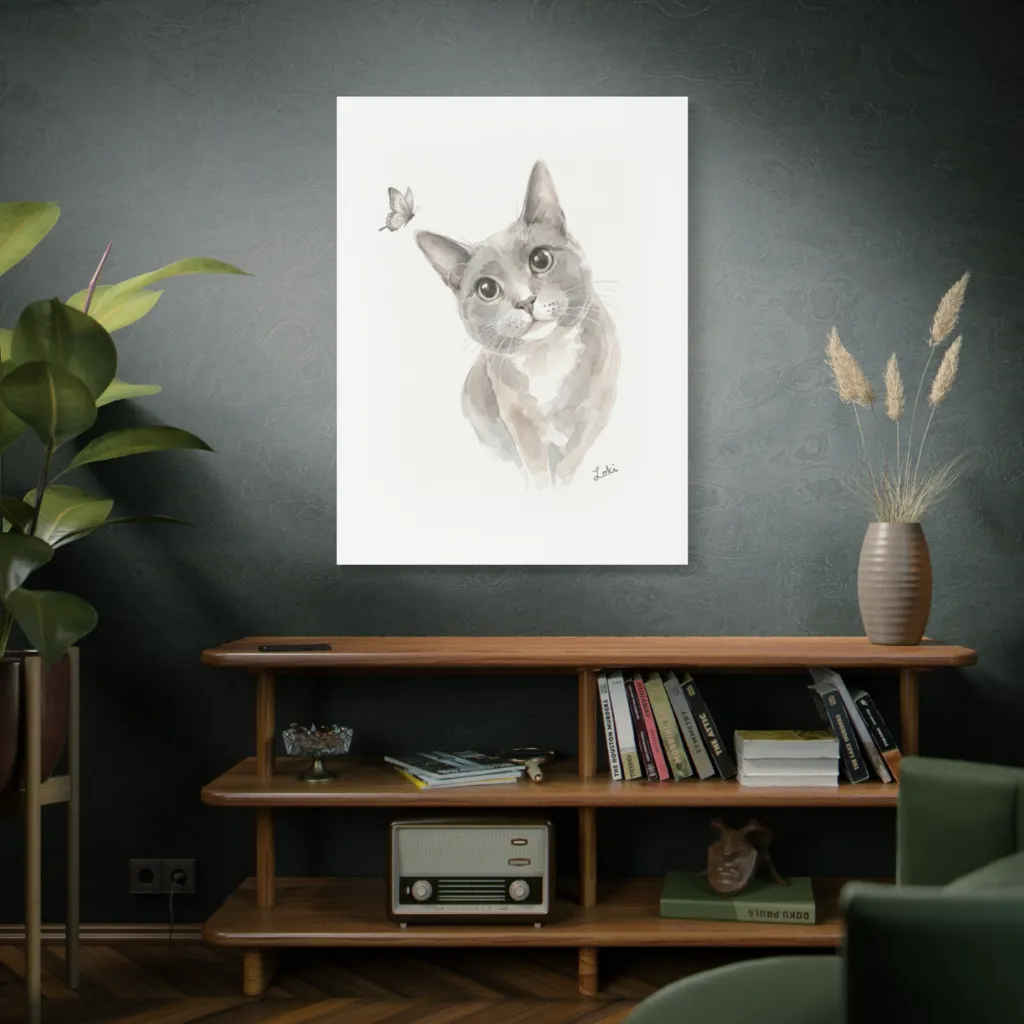 This piece innovatively merges classic watercolor charm with a contemporary digital sensibility. Loki's gaze, rendered with bold compositional choices, redefines pet portraiture, making a traditional medium feel refreshingly modern. Truly compelling curation!