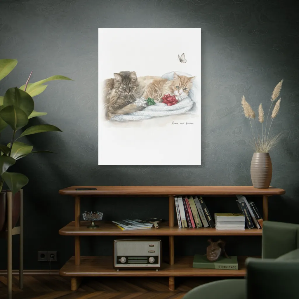 “Luna and Simba’s Gentle Repose” beautifully captures their serene bond. Their relaxed stances and soft expressions perfectly reveal their tranquil, loving spirits, making them truly special companions. So much soul here.