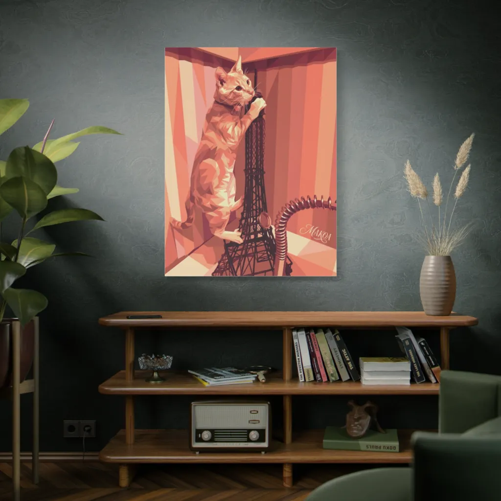"Makoa and the Iron Spire" exhibits a fascinating low-poly juxtaposition, rendering feline mischief with avant-garde panache. The vibrant palette and geometric precision evoke a visceral, almost absurd, triumph. A post-modern masterpiece for the discerning eye.