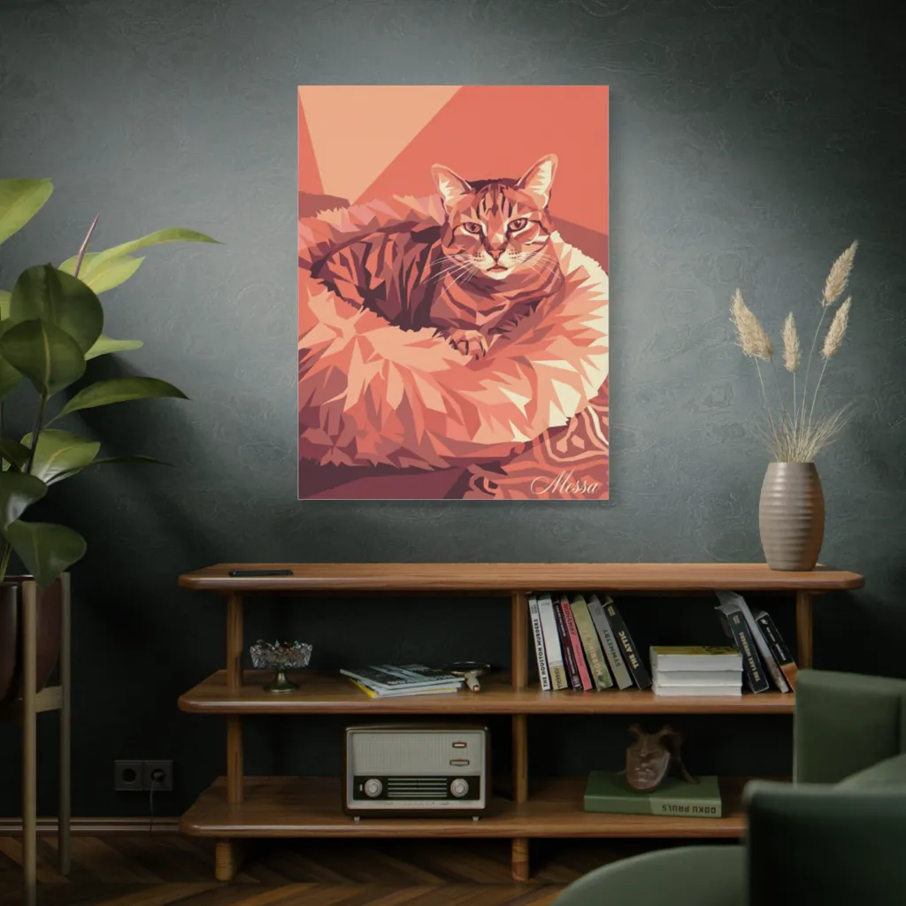 Messa's low-poly aesthetic brilliantly reimagines classic feline portraiture. The angular warmth is innovative, fusing digital geometry with serene subject matter. A bold, experimental take, pushing the boundaries of contemporary pet art.