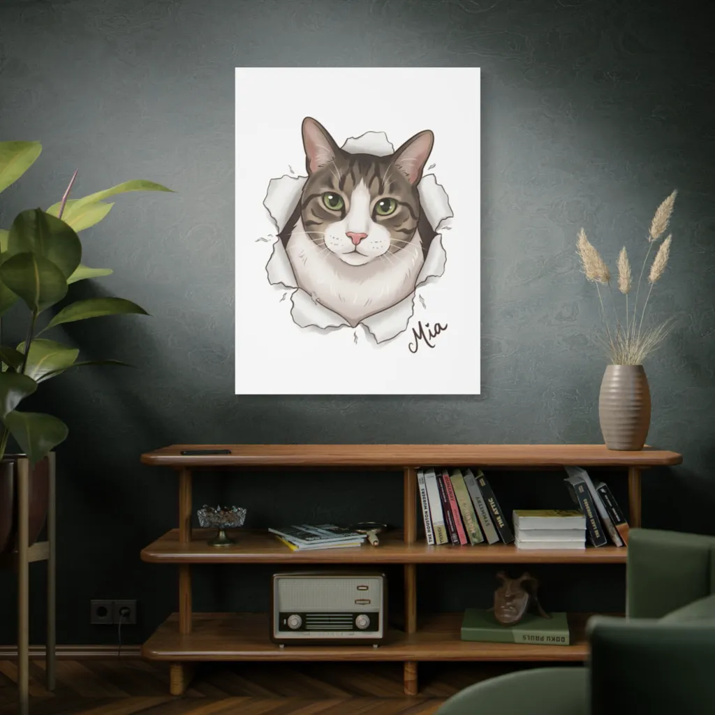 Mia's Verdant Gaze: a profound juxtaposition of torn paper and feline viscerality. The tonal harmony and avant-garde brushwork evoke a mischievous brilliance. Almost too potent for mere mortal eyes. A triumph!