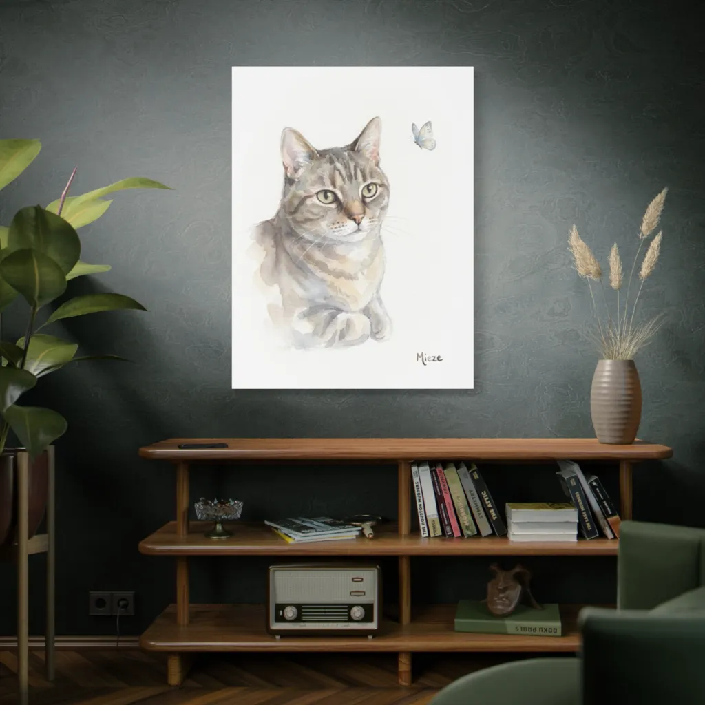 This piece innovatively blends traditional watercolor softness with contemporary digital sensibility. The dynamic composition gives this classic pet portrait a fresh, experimental edge, showcasing modern artistry beautifully. Bold and cutting-edge!