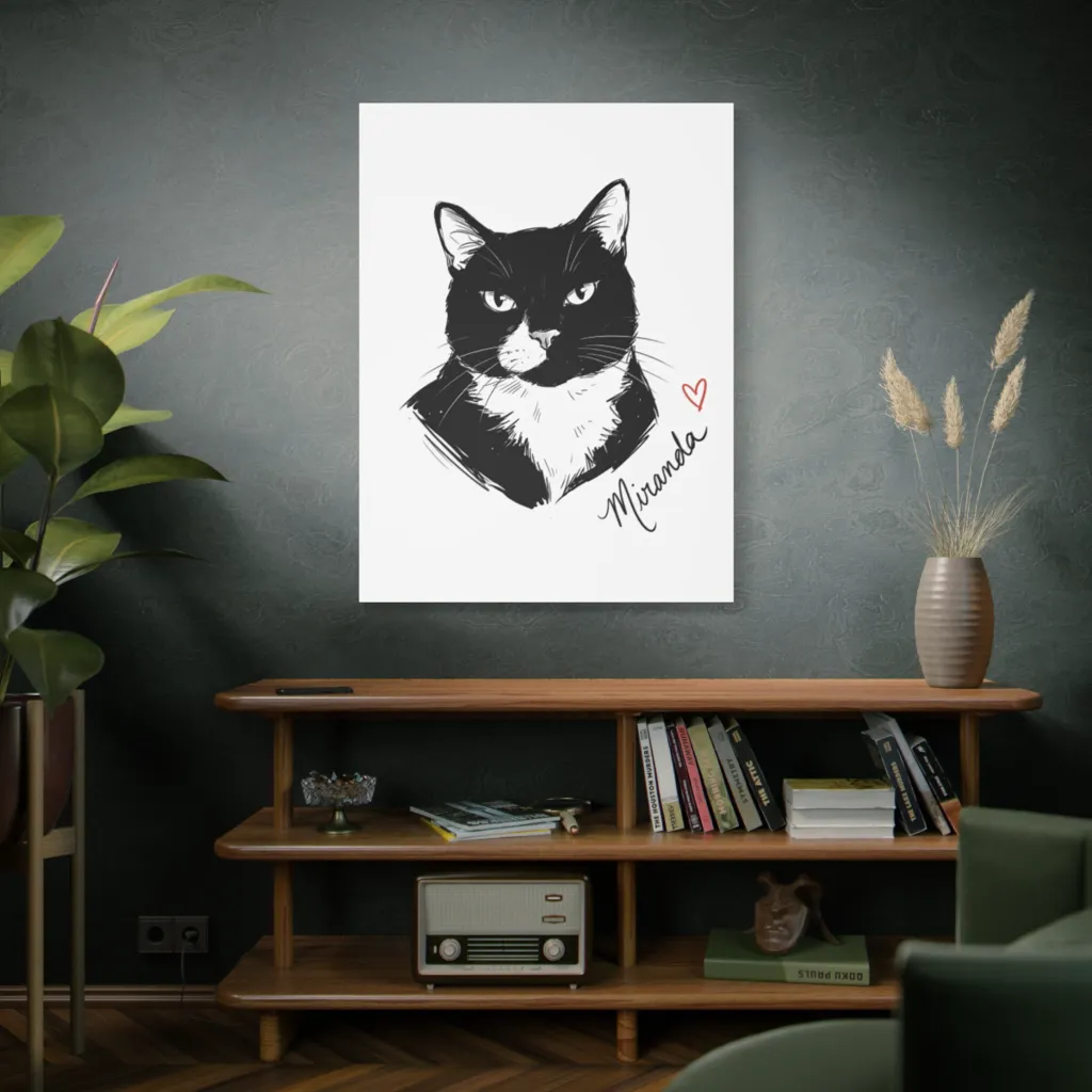 This piece brilliantly digitally reinterprets traditional portraiture. The bold, inky strokes create a dynamic, innovative aesthetic, giving Miranda a contemporary, almost holographic, presence. Groundbreaking feline art!