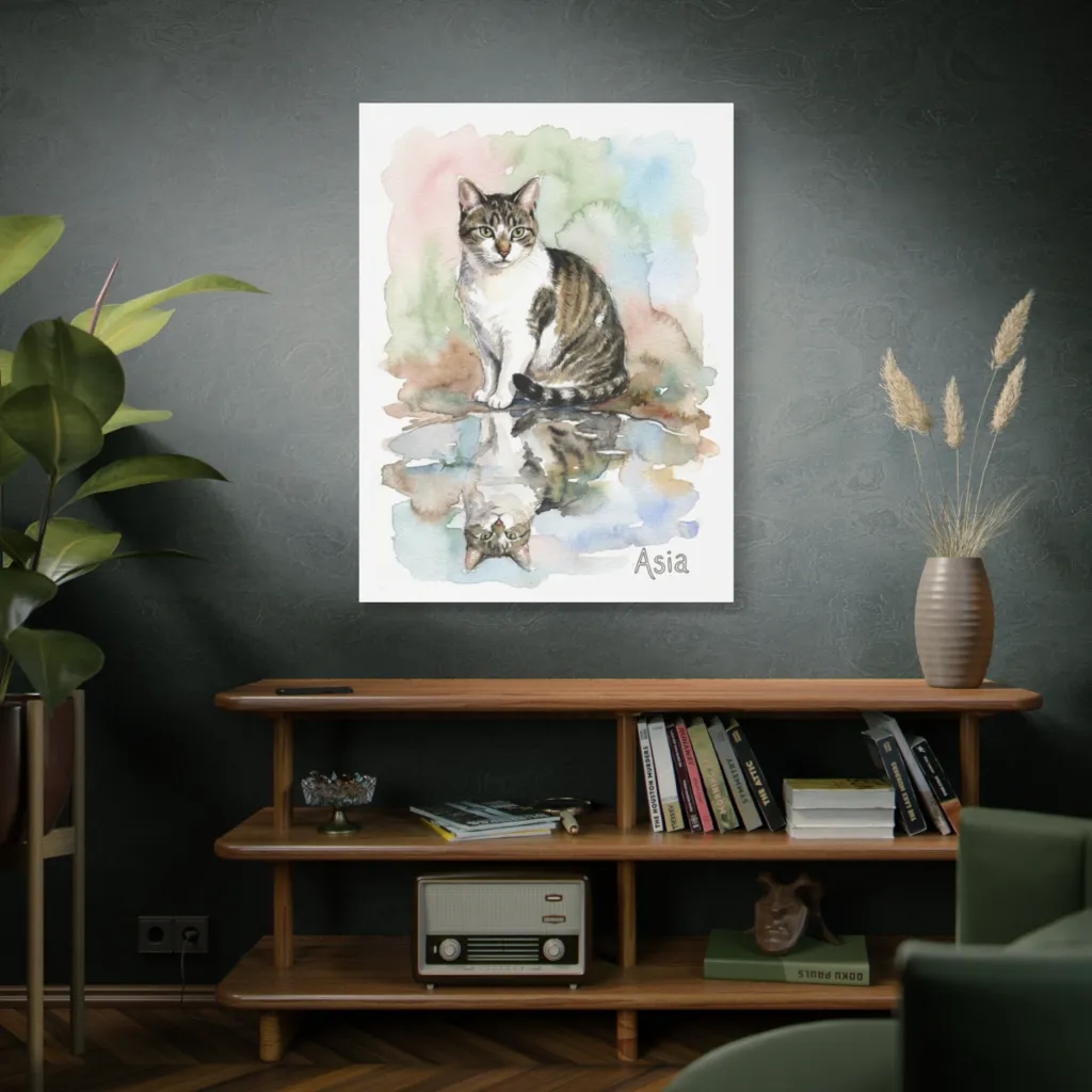 "Mirrored Gaze of Asia" perfectly captures Asia's watchful, playful spirit. Her intent expression and unique stance beautifully convey a curious soul, truly making this tabby's personality shine through. A delightful, soulful portrait.