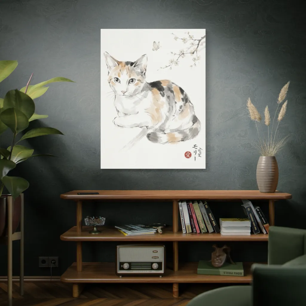 This Sumi-e piece exhibits exquisite composition and elegant restraint. Molly's focused gaze commands attention, evoking classical ink painting. Its undeniable presence makes it ideal for a prestigious exhibition.