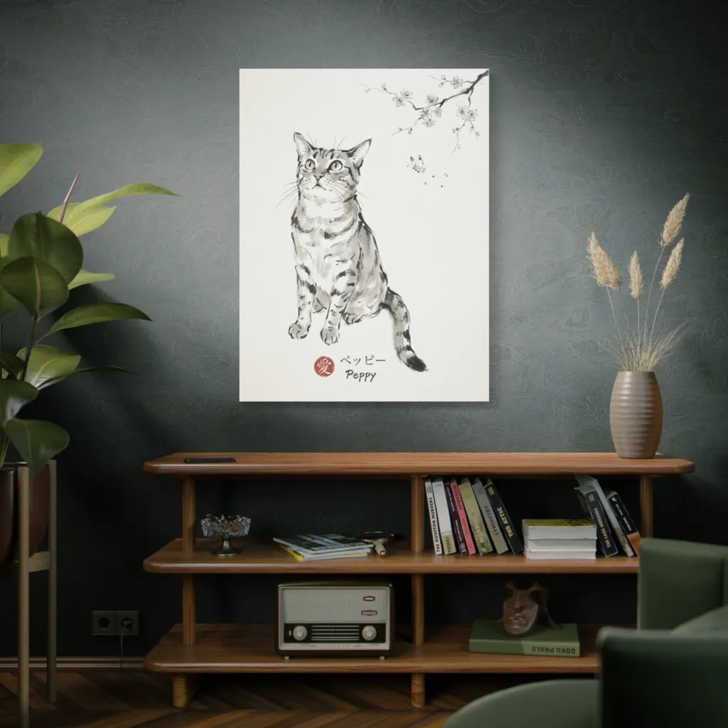 The sumi-e's visceral elegance, a juxtaposition of delicate geometry and evocative brushwork, reveals Peppy's profound existential ballet. Truly a tonal masterpiece—worthy of a Louvre annex for felines.