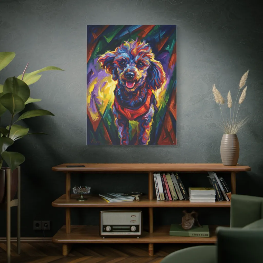 A jubilant, fauvist pup, painted in riotous color and bold strokes, bursts with playful energy.