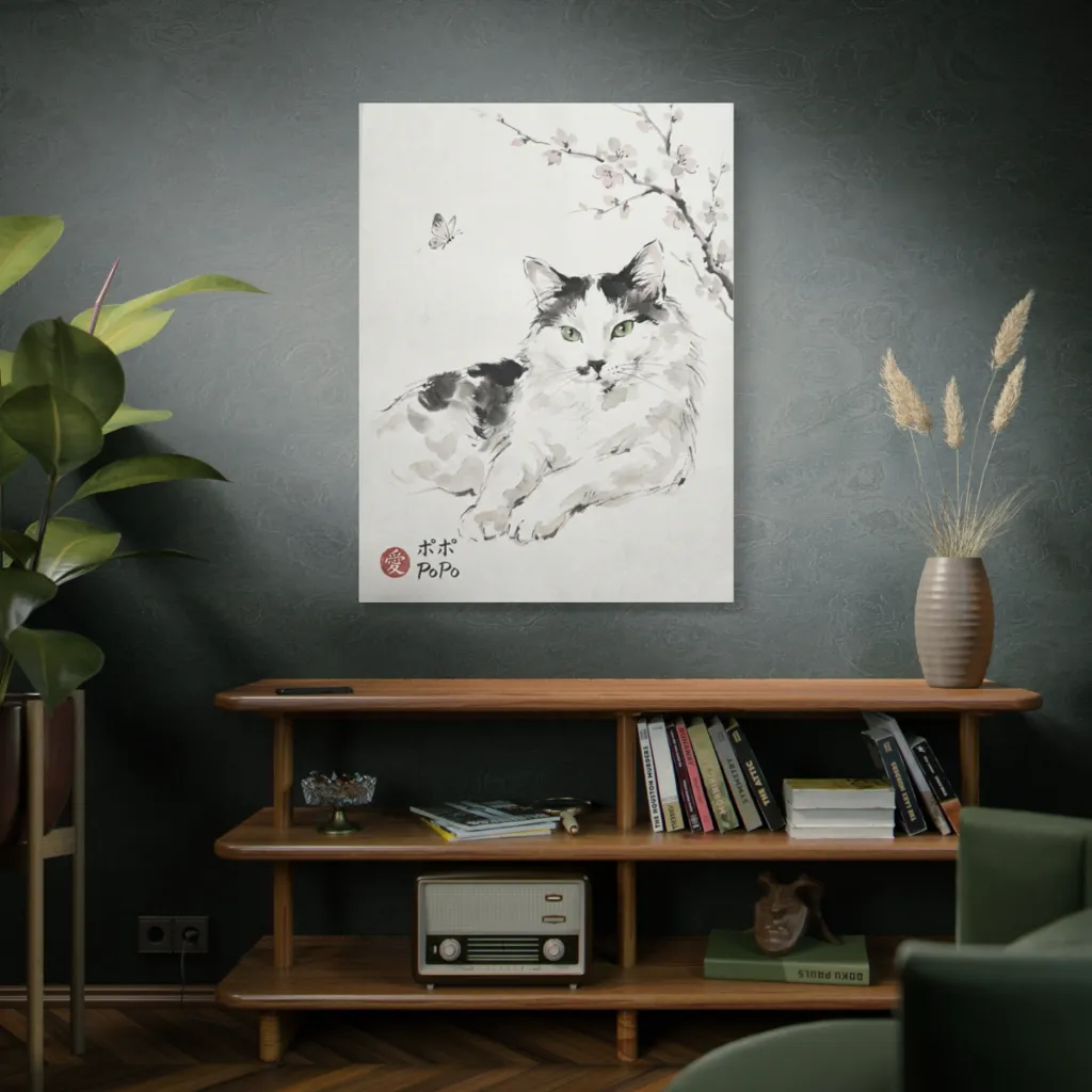 PoPo's sumi-e elegance, punctuated by emerald eyes, achieves a visceral tonal harmony. This avant-garde rejection of the fleeting, a true masterpiece of feline indifference, evokes profound contemplation.
