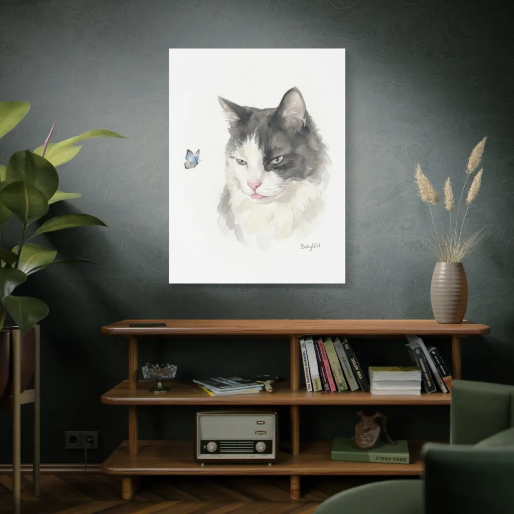 The soft watercolors, with cool grays countering warm pinks of the blep, create delightful chromatic harmony. This perfect saturation vividly captures BabyGirl's grumpy-playful energy, making her side-eye truly pop. Emotionally resonant!