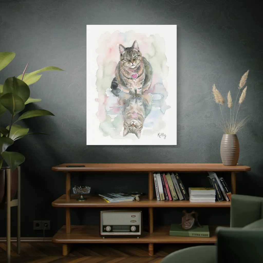 "Portrait of Kitty, Reflected" possesses unique charm and engaging wit, making it a prized conversation piece. Its vibrant artistry and emotional depth guarantee lasting appeal; a treasured, sophisticated addition to any collection.