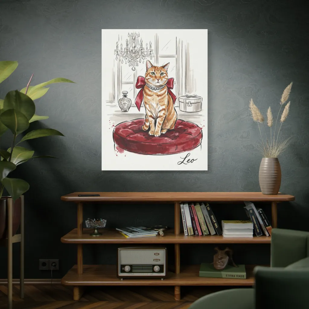 This portrait evokes pure joyful whimsy and charming elegance. Leo's regal pose radiates pampered delight, bringing daily smiles and a warm, comforting sense of playful affection. Simply delightful!